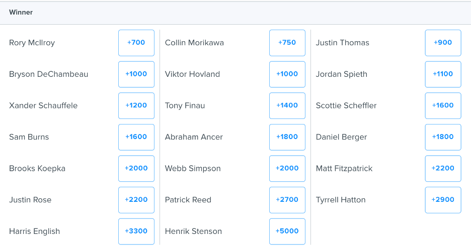 As always, the field is very small for this tournament which makes the odds worse but I think there’s still some value. Similar to the other tourneys, won’t be going huge on anything until we’re fully back in season.
