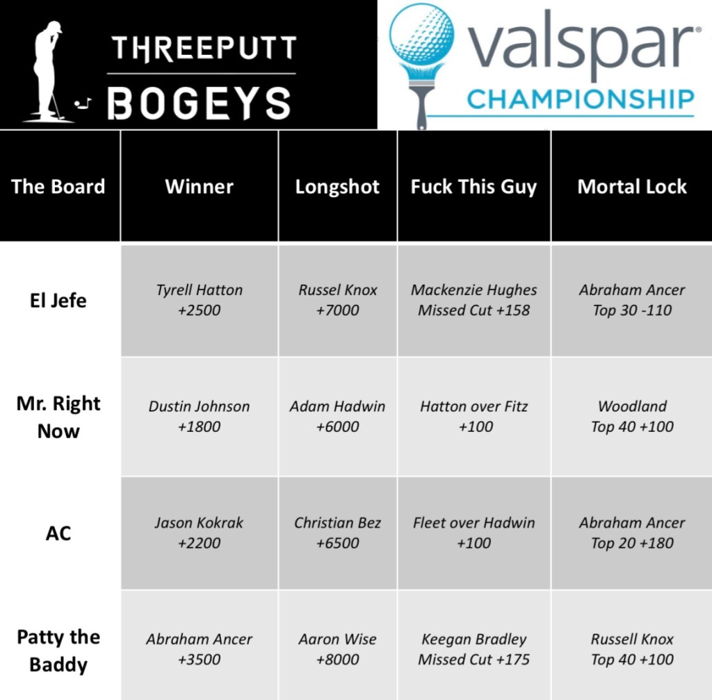 Now that The Players is over, let’s move on to the next week inthe Road to The Masters. We start with the Valspar Championship.