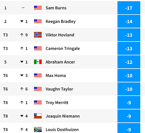 Last year, Burns got himself the win and the board had some decent names up there. He had the 54 hole lead and finally closed the door after blowing his two previous 54 hole leads to secure his first PGA win. He had to fight off Keegan the entire tournament until the 13th hole when he was able to pull away as Keegan gave it up. Overall, it was a fun tournament with the decent field they had.