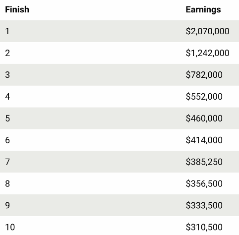 The purse is a total of $11.5 Million and will pay the winner out a whopping 2 mil. The money is just an extra when it comes to The Masters.. but overall a very solid purse. The biggest prize of The Masters is obviously the Green Jacket and lifetime membership.