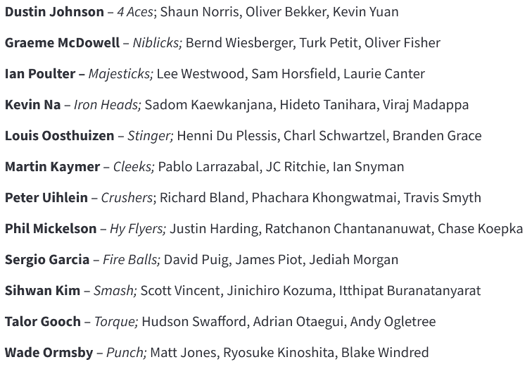 This is where things get interesting and I am still trying to figure it out. There is essentially two tournaments within one as it is both individual and team based. For starters, the tournament will be a 54 hole event with no cut lines and a shotgun start which should actually make the viewing experience pretty cool with tons of action off the bat. I think they also do a shotgun start on Saturday which seems pretty fucking dumb but guess it’s their thing. The individual winner will be like any other tournament where the lowest score wins. The team structure will be based on the 12 teams we saw selected on Tuesday.