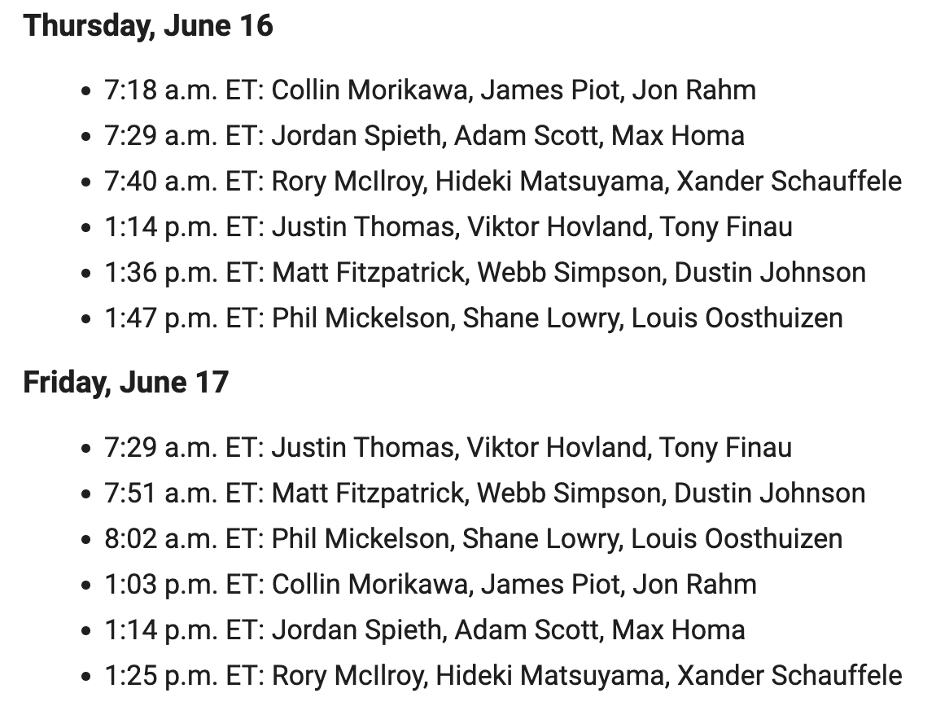 Not perfect, but definitely some solid groups throughout. Always good to see some young guys get in the mix that are typically left out – such as Homa and Fitz – so that should be cool. Phil will be featured as he fights yet again to complete his career grand slam.