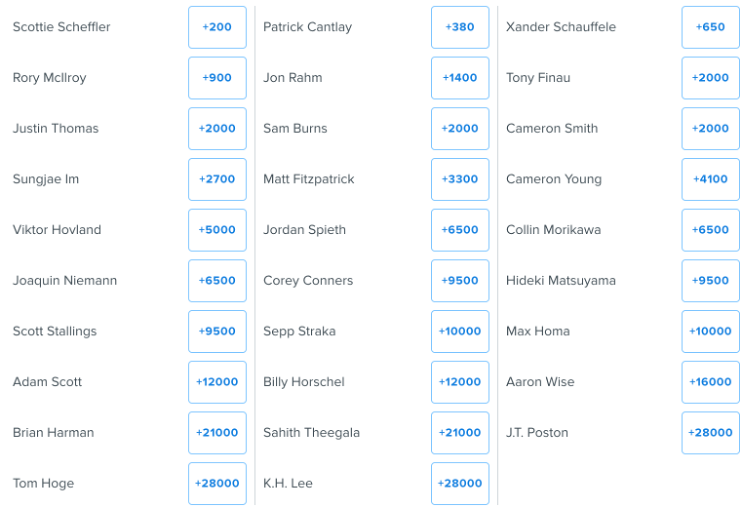 Winner w/ Handicap – Scottie Scheffler +225