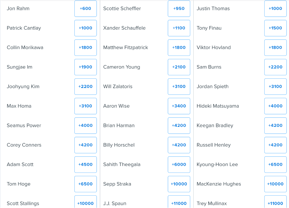 - Rahm comes in as the heavy favorite after his performance last year as well as his very strong fall but I just can’t get behind +600